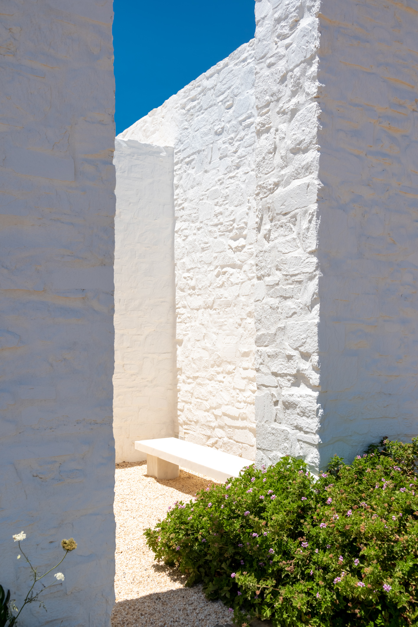 Τhe atriums are not immediately perceptible from the outside and they contribute to the separation of the whole into smaller building units. As a result, with these one-room or two-room volumes of the composition, a harmonious building integration in the architectural tradition of Paros and in the wider Cycladic landscape is achieved.