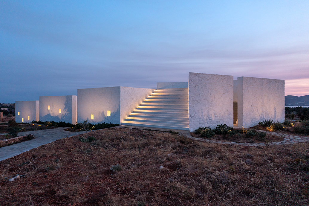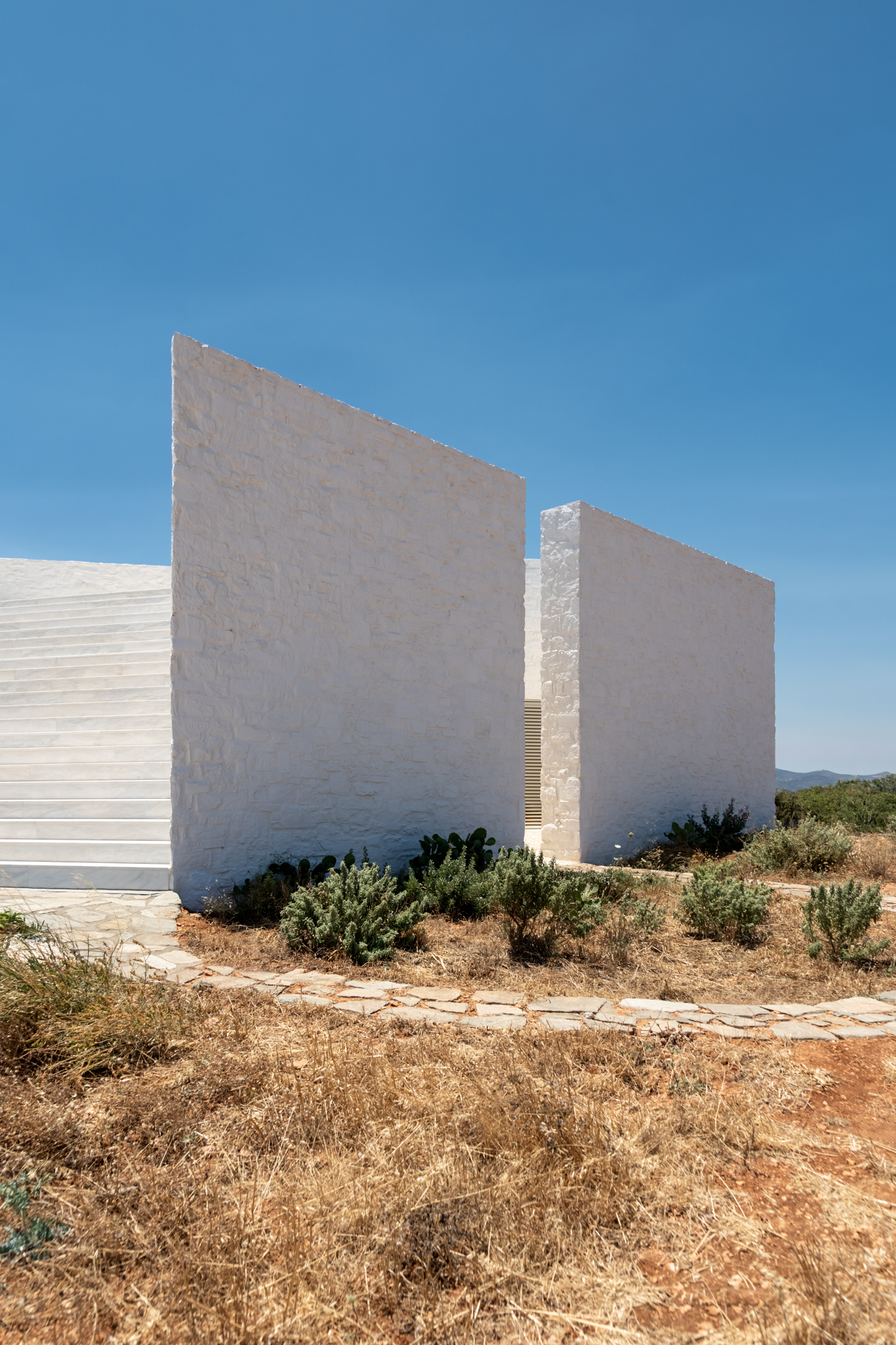 The proportions of the volumes, as well as the discreet external openings are inspired by the historic stone shells that we find in this area of the Aegean for centuries.