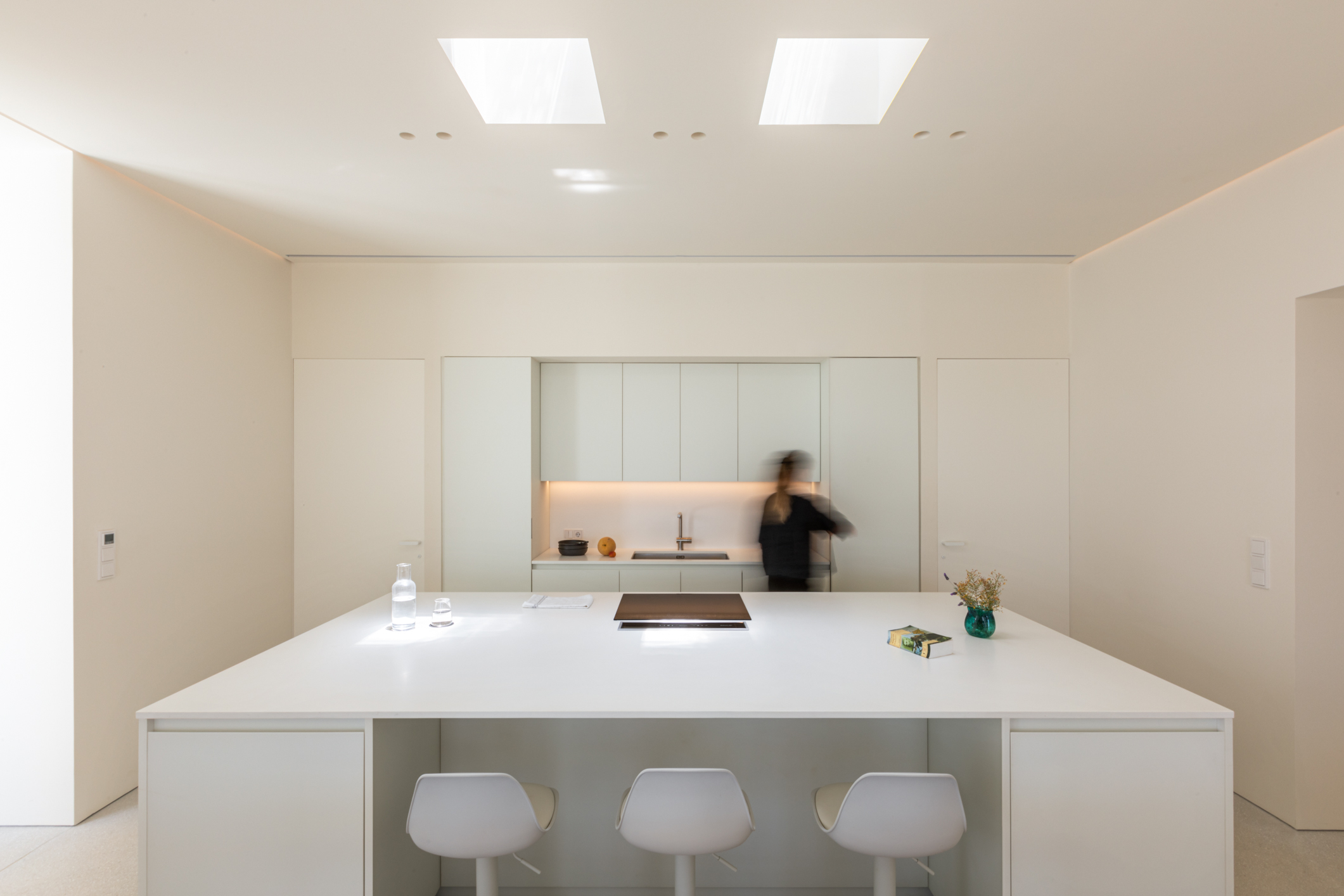 Three out of four volumes are separated from each other by atriums that give the possibility of natural lighting in the interior and ensure privacy since the life in the house is not directly exposed to the surrounding area.